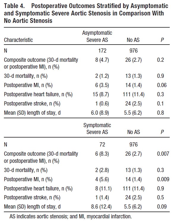 Agarwal S, et al. Impact of aortic stenosis on postoperative outcomes after noncardiac surgeries. Circ Cardiovasc Qual Outcomes. 2013 Mar 1;6(2):193-200.