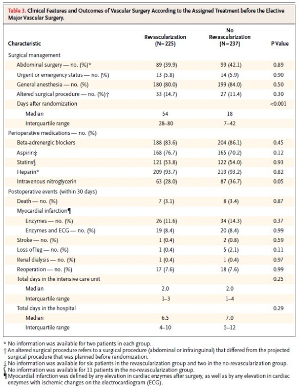 McFalls EO, Ward HB, Moritz TE, et al. Coronary-artery revascularization before elective major vascular surgery. N Engl J Med. 2004 Dec 30;351(27):2795-804.