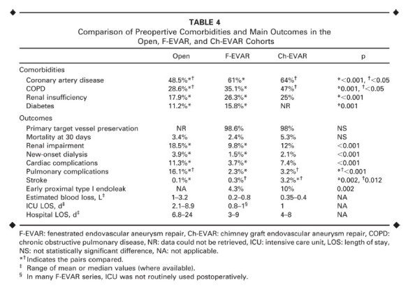 Katsargyris A, et al. Comparison of outcomes with open, fenestrated, and chimney graft repair of juxtarenal aneurysms: are we ready for a paradigm shift? J Endovasc Ther. 2013 Apr;20(2):159-69.