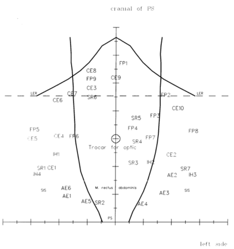 Abstract: A knowledge of the parietal structures of the abdominal wall is necessary to minimize risks of operative procedures like laparoscopy. For means to prevent intraoperative bleeding and the occurrence of abdominal wall hematoma, we studied the course of the inferior epigastric arteries and the ascending branch of the deep circumflex iliac artery in 21 human cadavers. The abdominal wall structures were dissected and the distances of the arteries in relation to anatomic structures such as the umbilicus, pubic symphysis, superior ischial spine and lower edge of the rib-cage were measured. Comparison of the morphometric results obtained with the location of 36 trocar incision sites recommended in the common literature yields the information that about half of these incision sites incur the risk of injuring the arteries.