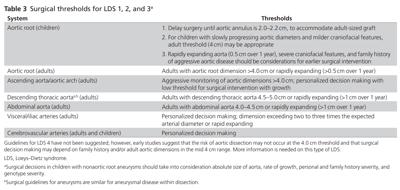 MacCarrick G, Black JH 3rd, Bowdin S, El-Hamamsy I, Frischmeyer-Guerrerio PA, Guerrerio AL, Sponseller PD, Loeys B, Dietz HC 3rd. Loeys-Dietz syndrome: a primer for diagnosis and management. Genet Med. 2014 Aug;16(8):576-87. doi: 10.1038/gim.2014.11. Free full-text.