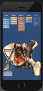 Based on a simple selection menu, users can navigate throughout the entire network of structures that comprise the male pelvic region, including the bony pelvis, pelvic floor, musculature, vessels, and connective tissue, and view their relationship to such organs as the bladder, reproductive organs, colon, and rectum. Structures can be rotated in 3D, made transparent or invisible, and viewed at different magnifications. The app also allows the arteries and nerves that traverse the pelvis to be clicked to trigger identifying text.”