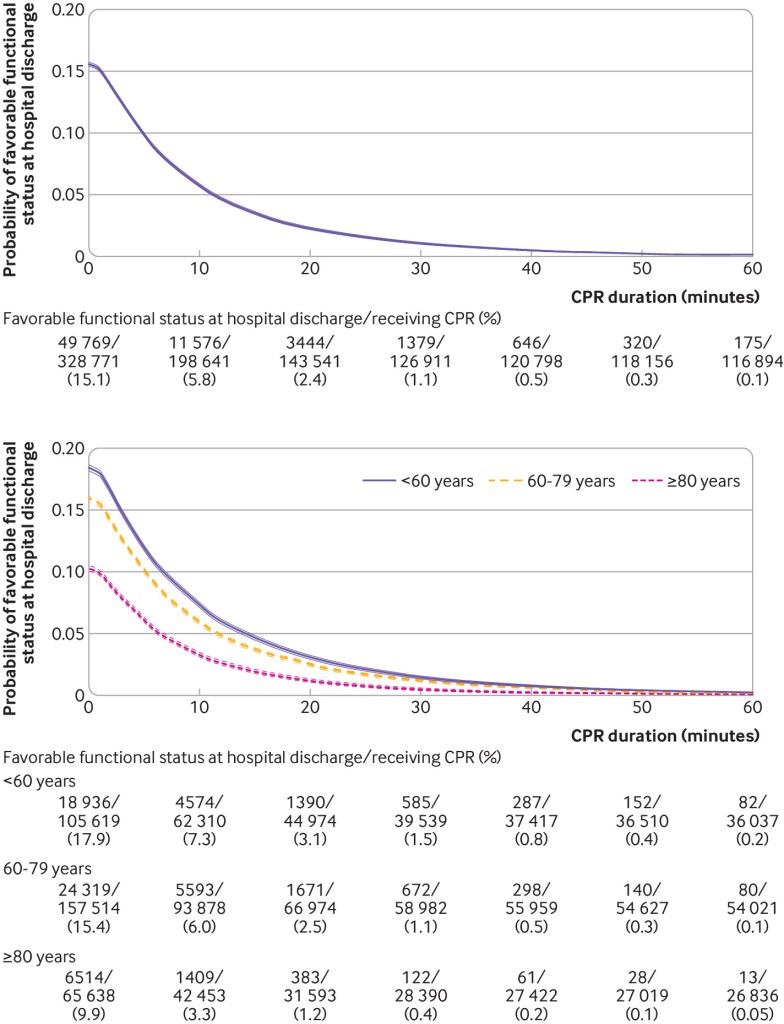 Okubo M, et al American Heart Association’s Get With The Guidelines—Resuscitation Investigators. Duration of cardiopulmonary resuscitation and outcomes for adults with in-hospital cardiac arrest: retrospective cohort study. BMJ. 2024 Feb 7;384:e076019. Free Full Text