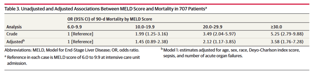 “Emergency general surgery (EGS) is associated with increased rates of morbidity and mortality compared with non-emergent general surgery cases.8 Patients undergoing EGS are approximately 2.5 times more likely to experience a significant complication and have a 6-fold increase in mortality relative to non-EGS patients. The underlying causes of this increased morbidity and mortality are not fully understood, but medical comorbidities and physiological derangements are likely to be contributing factors. Although surgical risk calculation tools such as the American College of Surgeons National Surgical Quality Improvement Project Surgical Risk Calculator are used to gain an objective sense of surgical risk stratification, such tools have yet to be comprehensively studied in this patient population and do not include the use of liver disease–specific assessment tools such as the MELD score in the prediction of outcomes among patients with CLD undergoing EGS.”