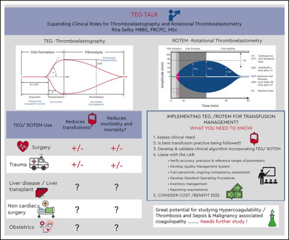 Selby R. “TEG talk”: expanding clinical roles for thromboelastography and rotational thromboelastometry. Hematology Am Soc Hematol Educ Program. 2020 Dec 4;2020(1): 67-75.