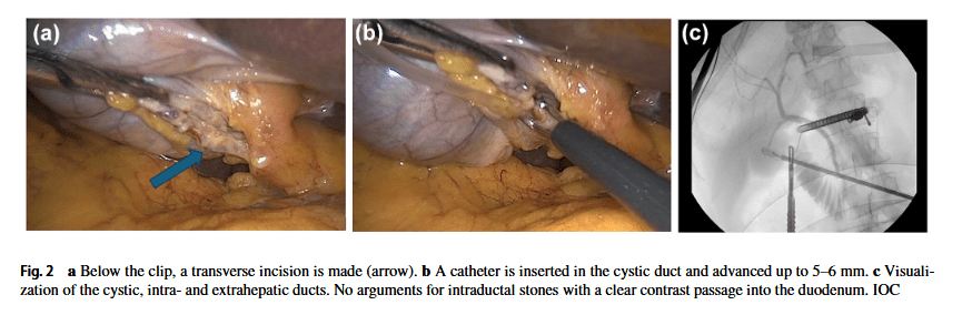 “The role of routine IOC during cholecystectomy has been controversial. Opponents to routine IOC assert that this procedure increases operating times and exposes caregivers and patients to radiation. In addition, there is the possibility of detection of indolent CBD stones with consequently unnecessary removal. On the other hand, advocates in favor