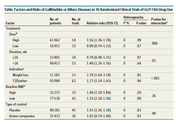 Several randomized clinical trials (RCTs) have shown a higher rate of gallbladder disorders in patients who were randomized to GLP-1 RAs vs a placebo. However, whether