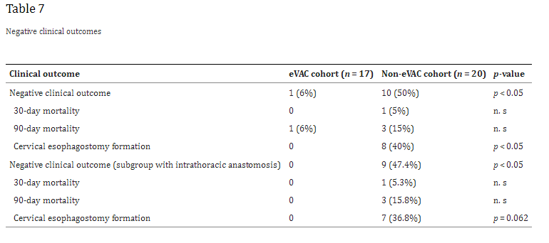 “Anastomotic leakages continue to be a highly challenging complication in esophageal surgery. According to the literature, the risk of anastomotic leakage after esophagectomy ranges between 4 and 35%. The location of the anastomotic leakage is a significant factor in determining patient outcomes. Notwithstanding, cervical anastomoses bear a higher risk for leakage; the consequences of an intrathoracic (mediastinal) leakage are usually more devastating. A leakage into the thoracic cavity typically leads to mediastinitis and severe pneumonia and contributes to the significant mortality rates in esophageal surgery. In contrast, cervical anastomotic leakages tend to frequently present as wound infections often only requiring external drainage”